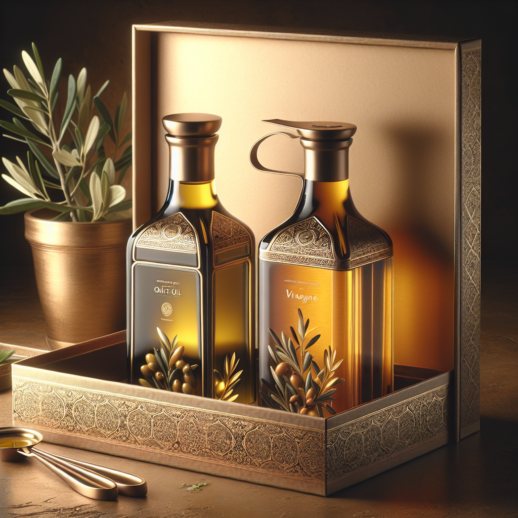 The packaging of an olive oil and vinegar gift set is as important as the products themselves.